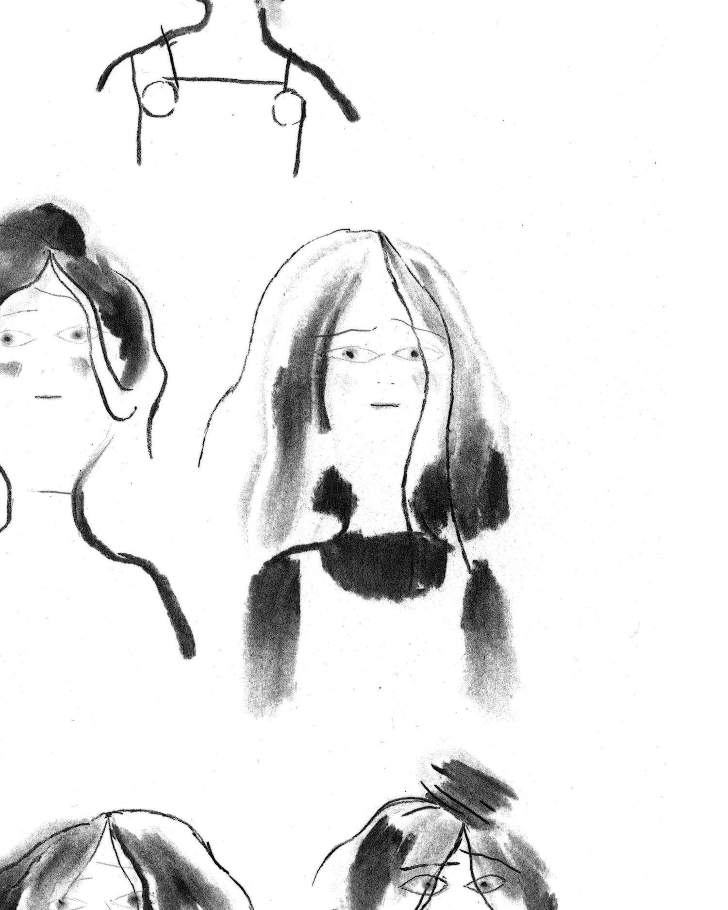 Random girls → Ink & charcoal on paper