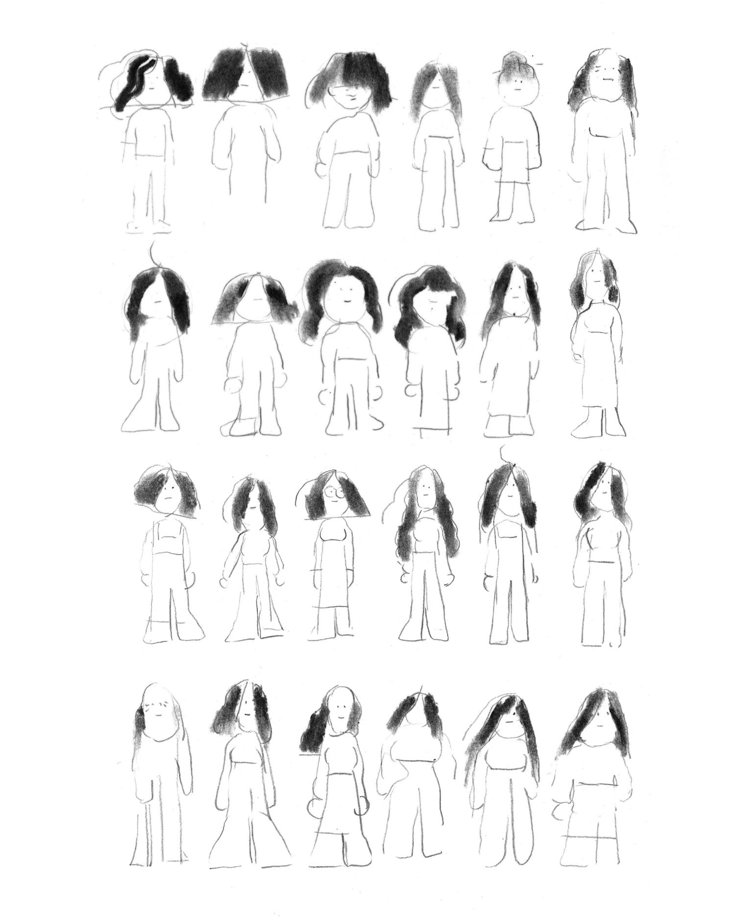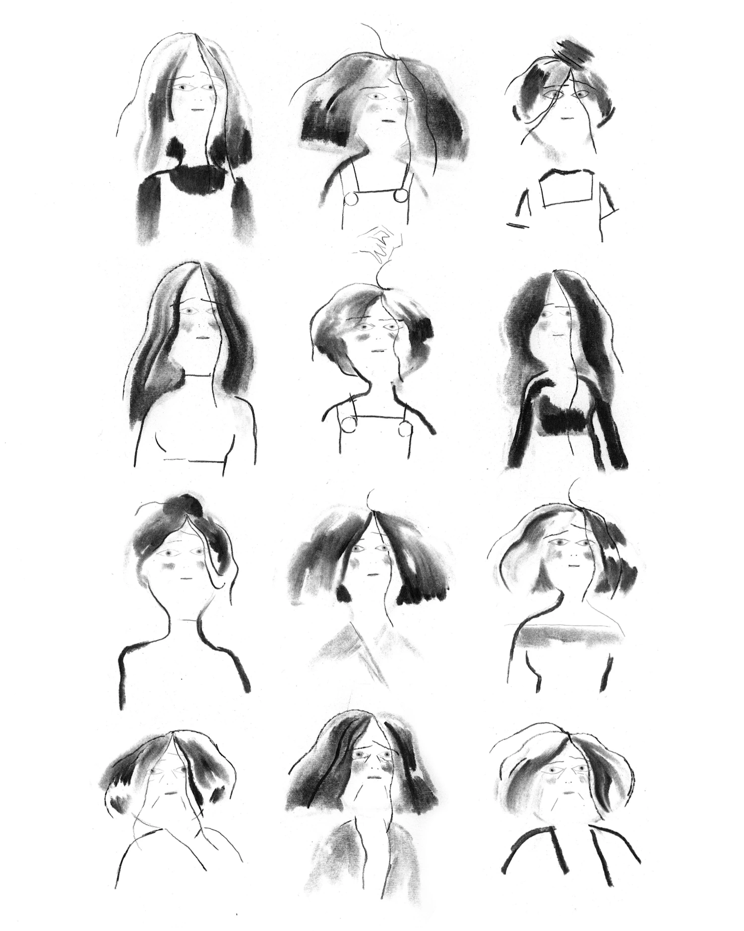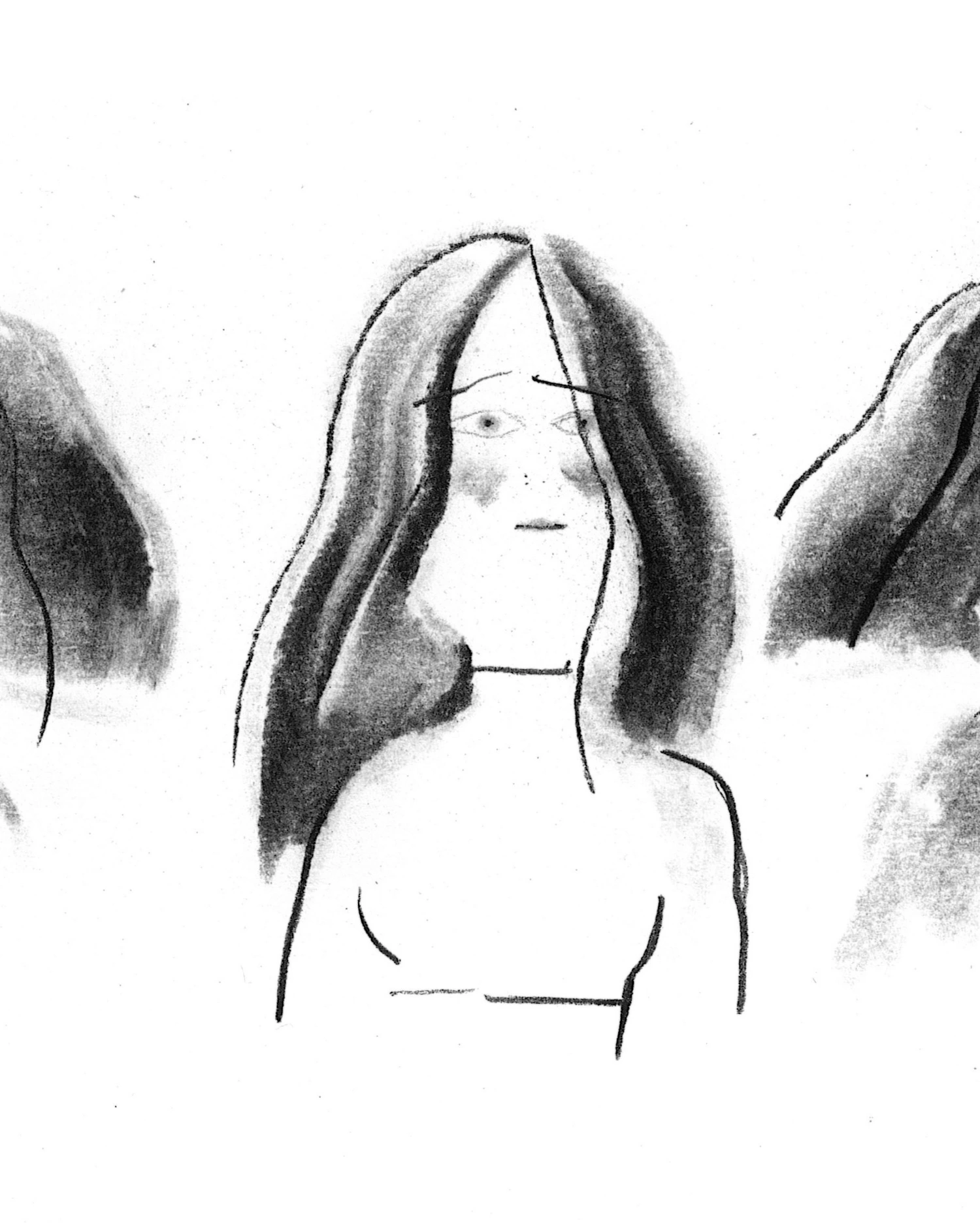 Random girls → Ink & charcoal on paper