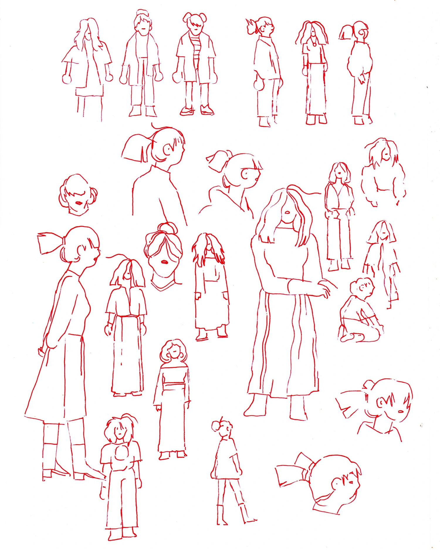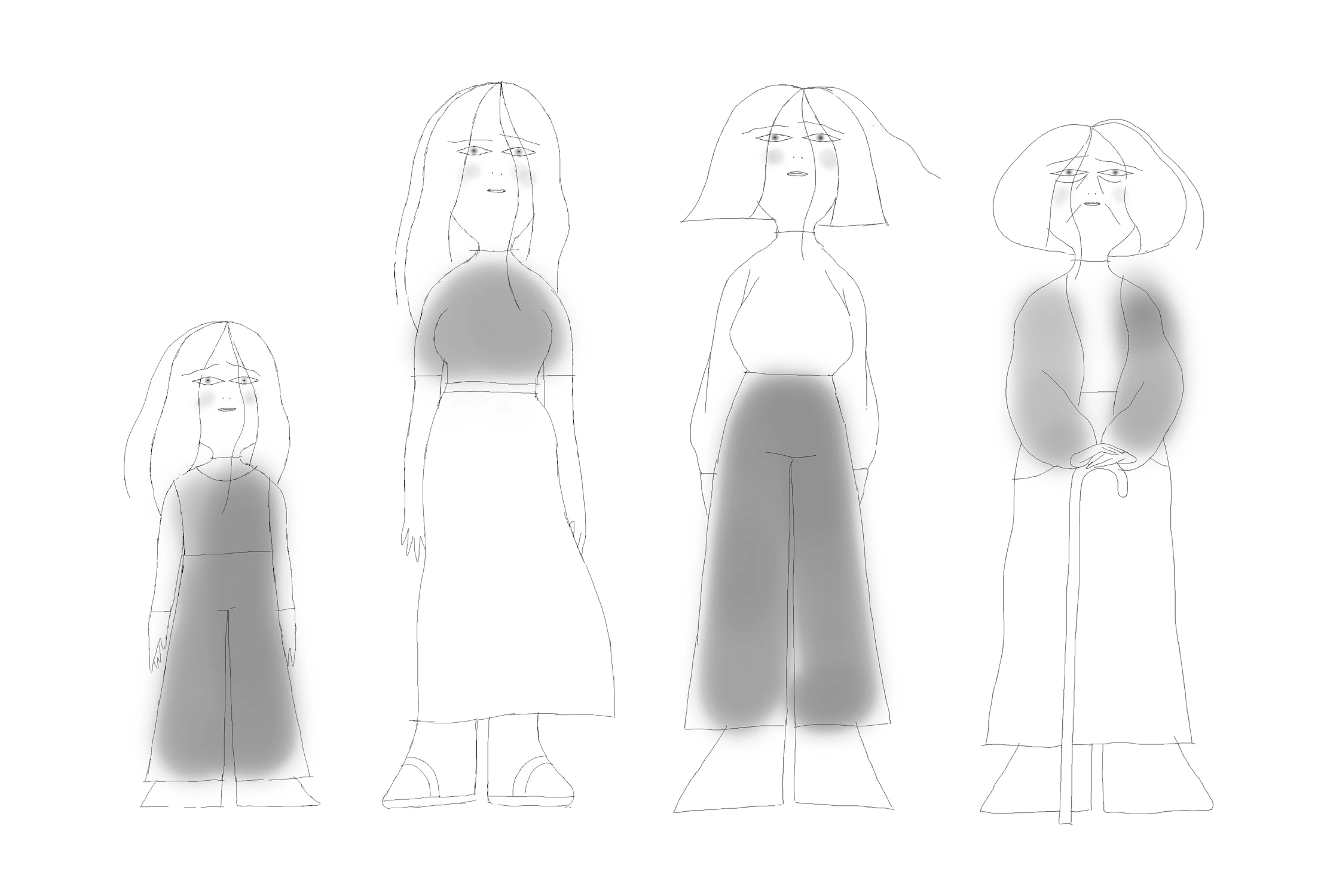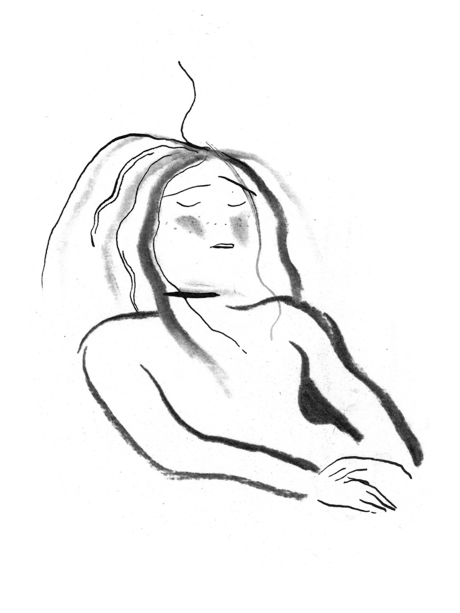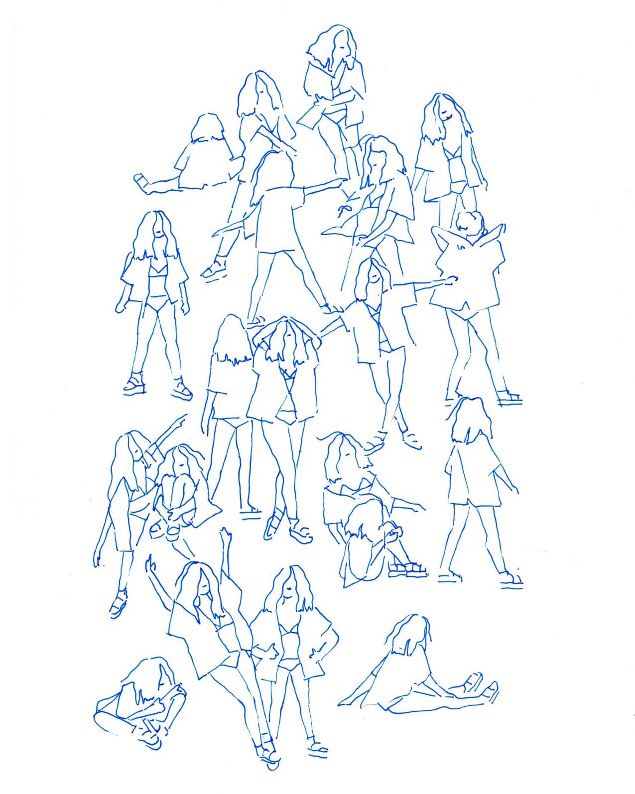Random girls → Ink & charcoal on paper